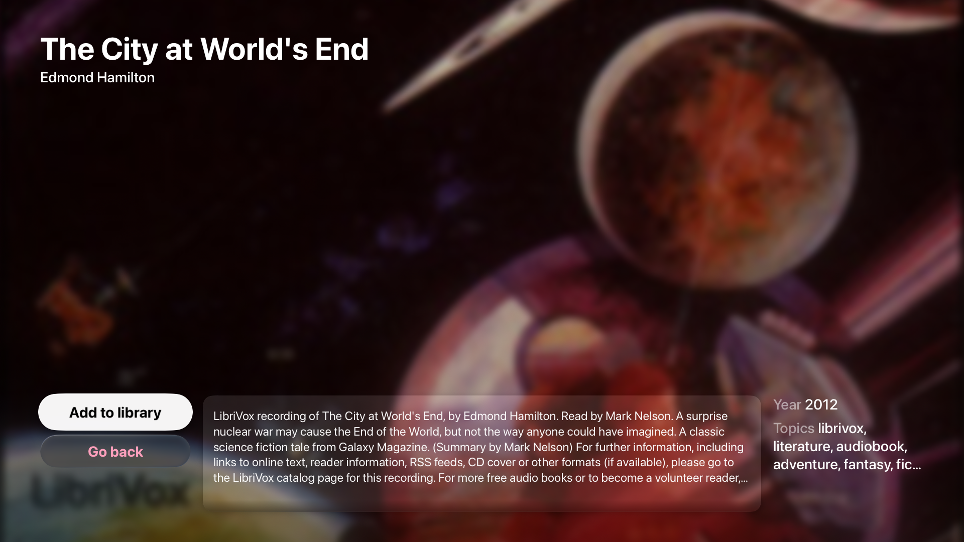 Eye Yay has built-in download manager. You can download a whole series or book in on go and listen to it offline for long trips. Downloads will continue in the background and resume if you quit the app before they finish.
